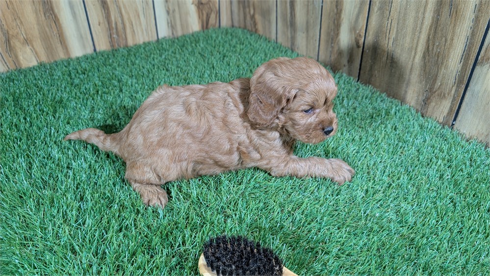 Meet this super sweet Cavapoo! This baby is socialized, loves kids, is ICA registered, Microchipped, and UTD on vaccines, and De-worming! He will be ready to ship to his forever home on 05/11/2026