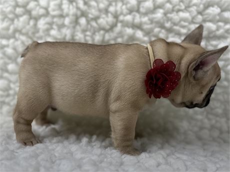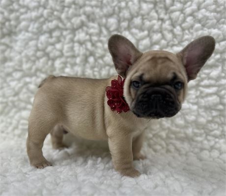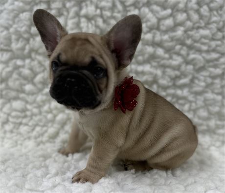 Breeder says. Gorgeous AKC Frenchie pups, great quality, build (confirmation) amazing personality, very well socialized since they’ve been raised (under toe) around my family.