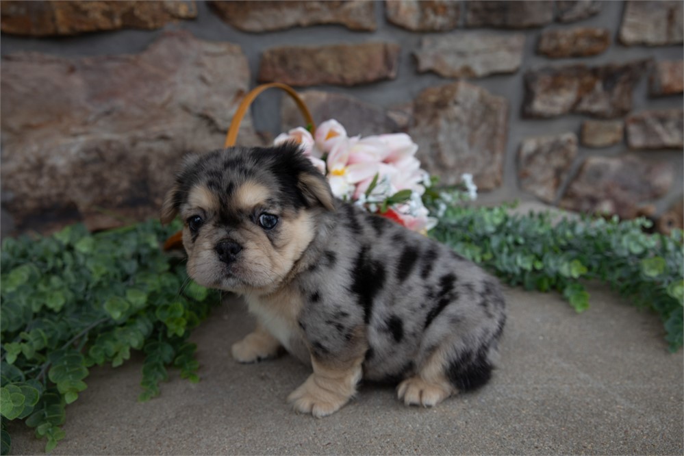 This breed is a small breed. In general, both males and females typically measure 10-12 inches in height and weigh an average of 20-25 pounds in weight. Please note, males and females may be smaller or larger than show standard and still be purebred. This breed is built small and stocky. Their square shaped head has rounded edges with two small, triangular ears standing firmly on the top of their head. Their two large, round eyes are generally brown to black in color. Their tail can be either straight when relaxed or curled upwards towards their back. This breed has a single layer, short hair coat that should always demonstrate a natural shine. Their coat is available in brindle, fawn, white, cream in all solids, color combinations and pie bald.