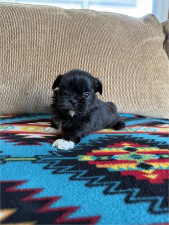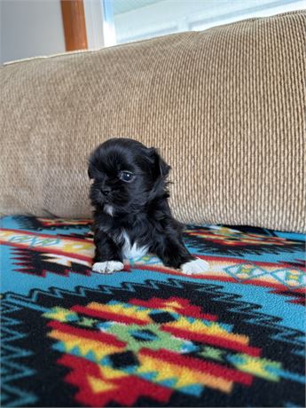 Please fully educate yourself about the Shih Tzu breed prior to adding one to your family to ensure a life long commitment physically and financially. This breed is prone to disc issues, eye issues, tooth loss and weight issues. A proper fitting harness and leash or properly installed fence is highly recommended while outdoors at all times for this breed. All dogs originate from wolves (Canis Lupus). Each breed of dog was originally created by mixing different breeds together in an effort to bring forth certain characteristics. Once a breeder has created acceptable “breed characteristics” within their bloodline and these “breed characteristics” have shown to be reliably reproduced in the offspring for three (3) generations, the bloodline may be upgraded from the category of “foundation stock” to “pure-bred”. The same “pure-bred” breed standards vary from different continents, countries, territories, regions, breed clubs, and canine pure-breed registries depending on the goals of their breeders.